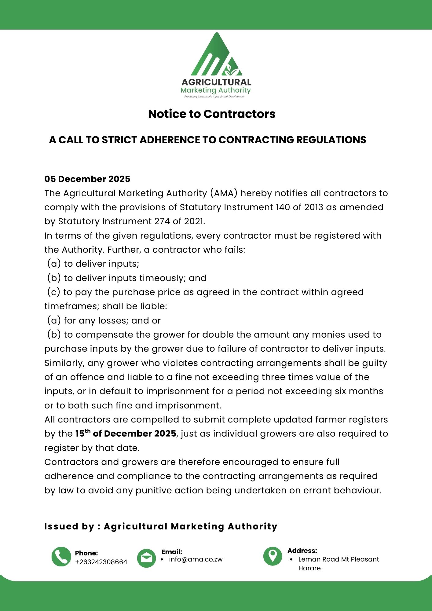 The AMA's message is simple: let's work together to make the system work as it should. By ensuring every contract is a firm promise, we build a stronger, more prosperous agricultural future for all of Zimbabwe.